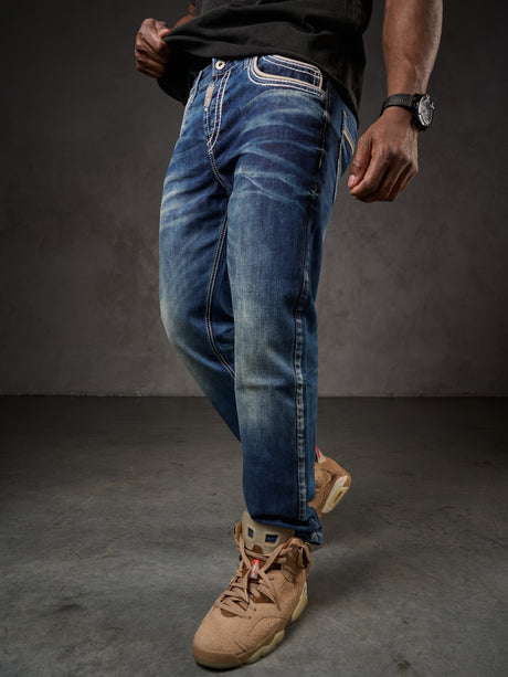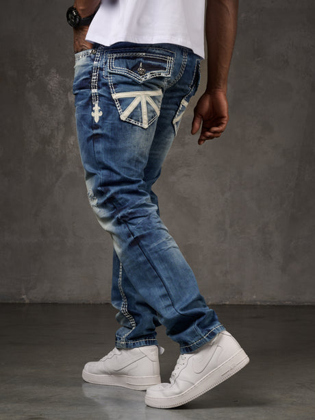 Sale price €29,99 EUR Regular price €84,99Unit price /UnavailableCD184 Men's comfortable jeans with offset decorative stitching in Straight Fit