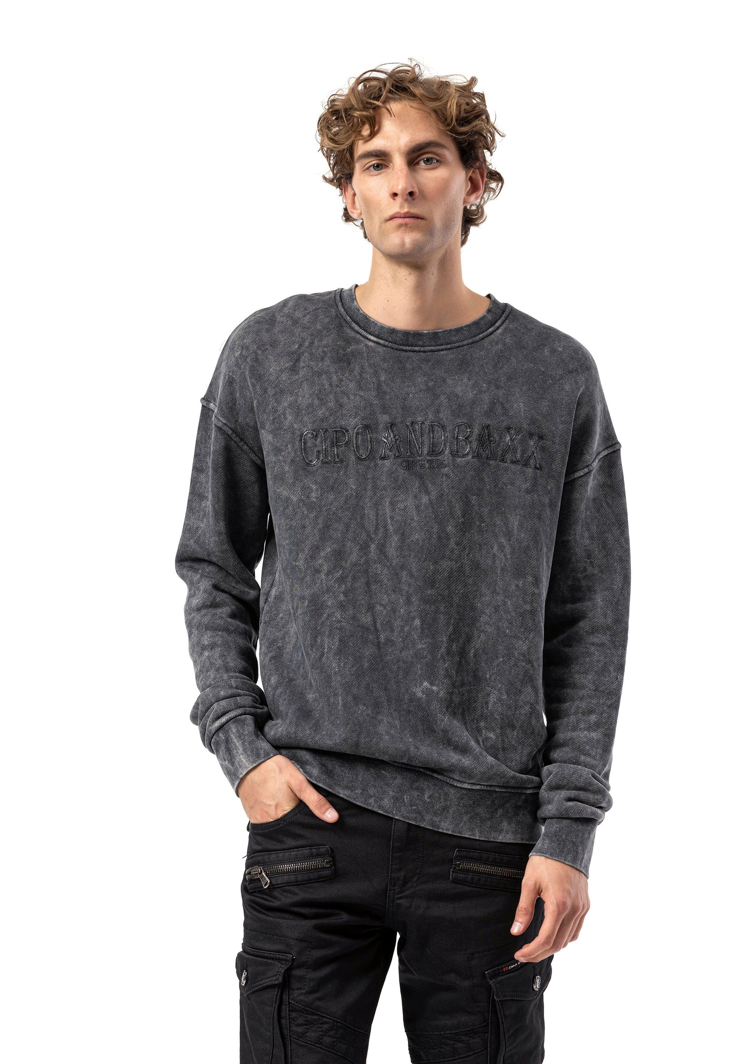 The CL595 Men’s hooded sweatshirt jacket impresses with its modern design and high wearing comfort. The abstract pattern in anthracite, combined with a soft sweatshirt fabric, gives the jacket an urban character. The hood with drawstring, the full-length zipper, and the practical front pockets make it the ideal companion for cool days – whether on a walk, in everyday life, or when meeting friends.