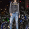 WD437 jeansy damskie w motorowym stylu