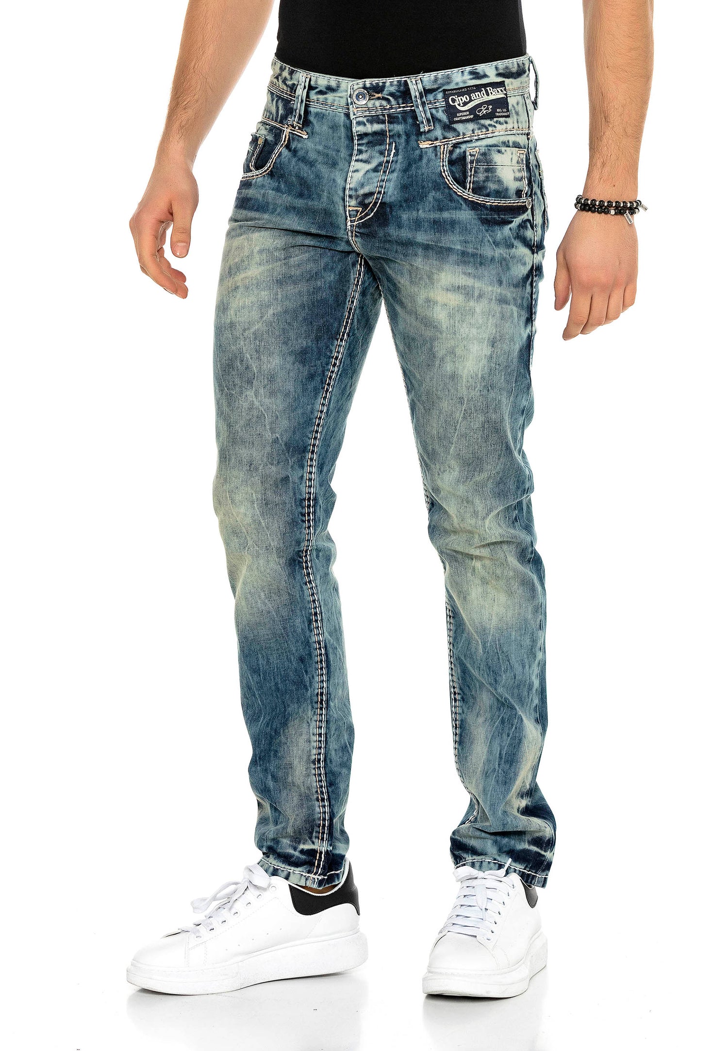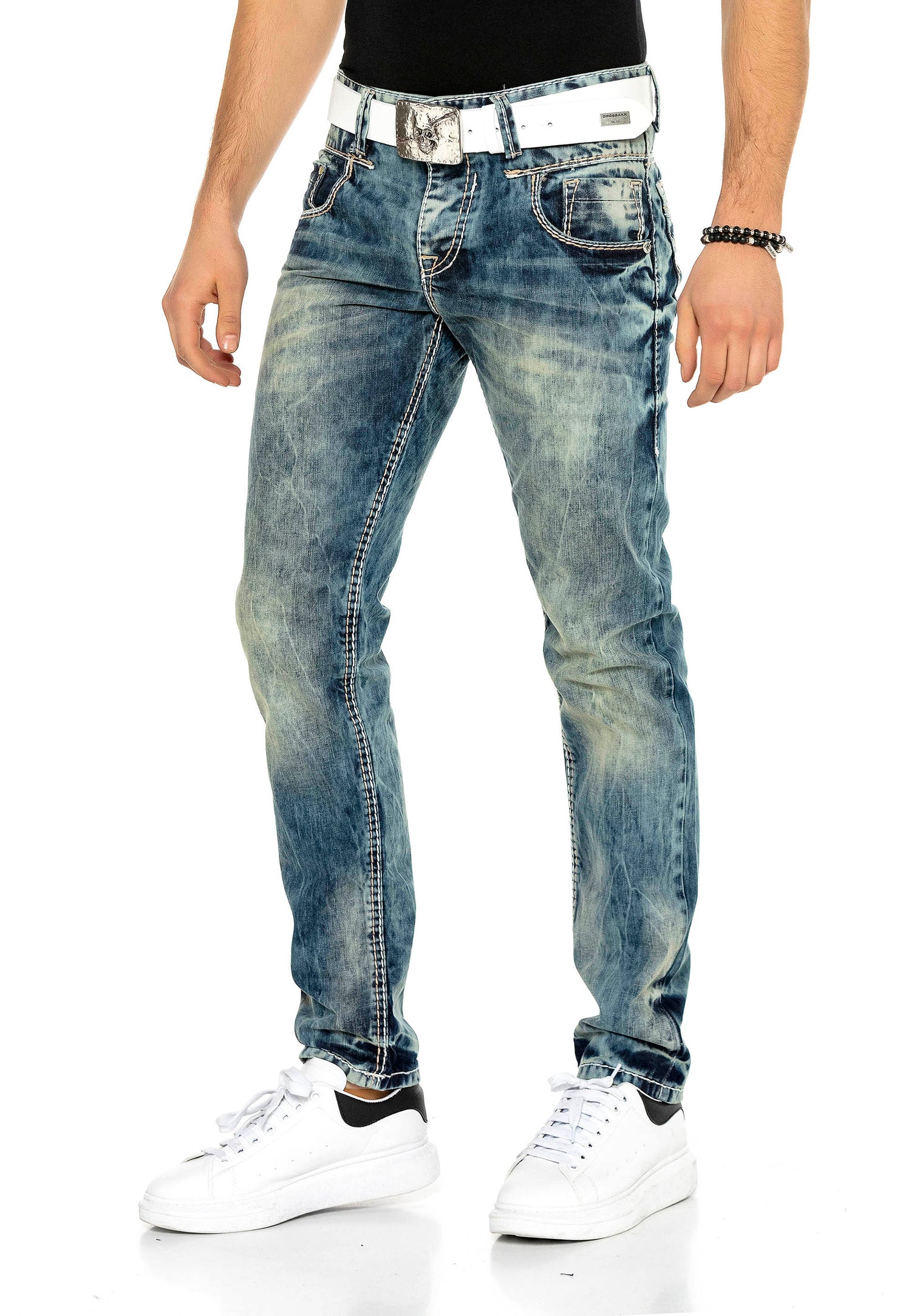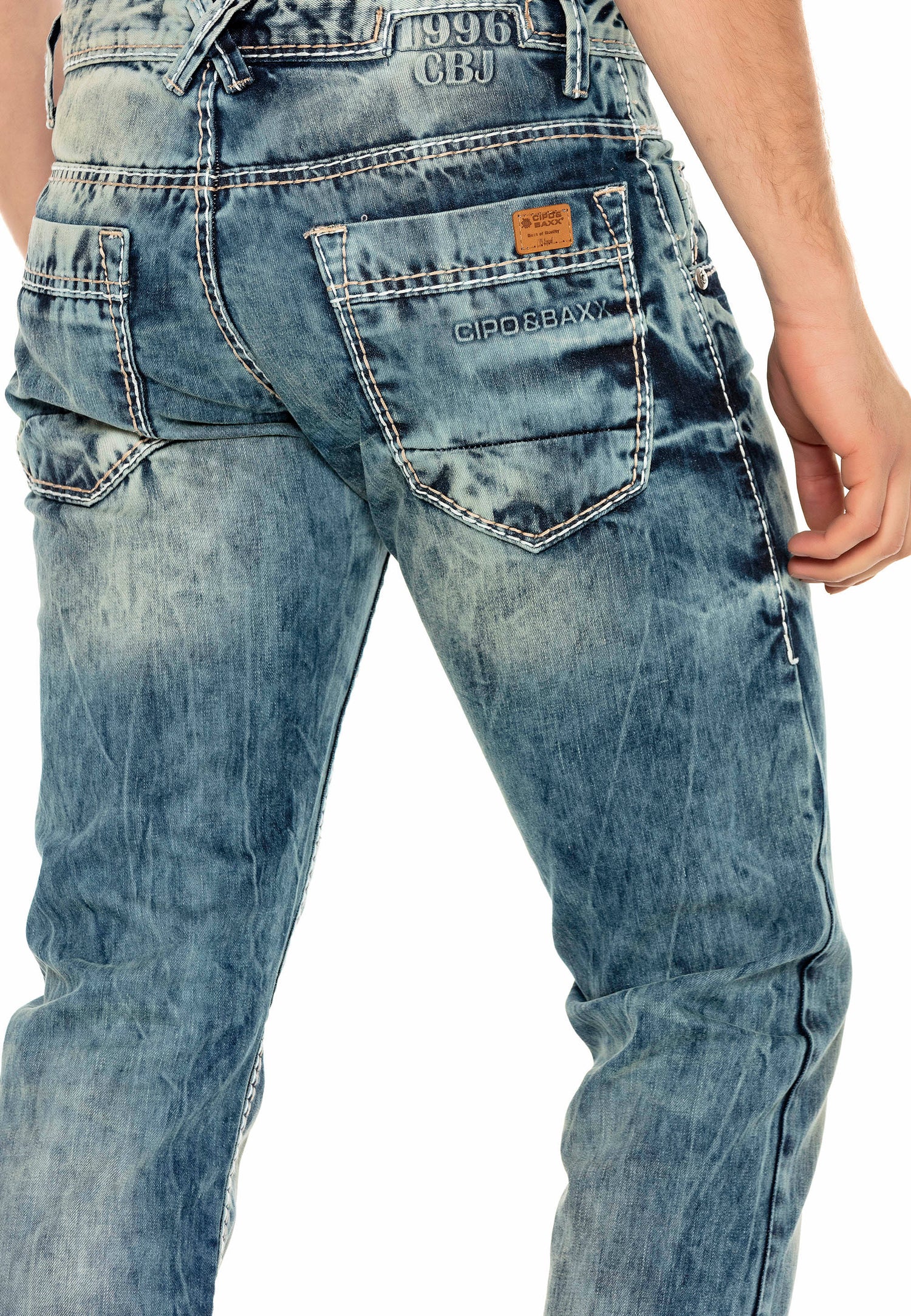 Jeansy są wysokiej jakości i mają przyjemny komfort noszenia. Dzięki wyrazistemu praniu, grubym szwom i wyjątkowemu designowi, jeansy mają naprawdę fajny styl. Kolor to "niebieski". Zapięcie składa się z guzików z wytłoczonymi logo "Cipo & Baxx". Krój: Regular Fit.