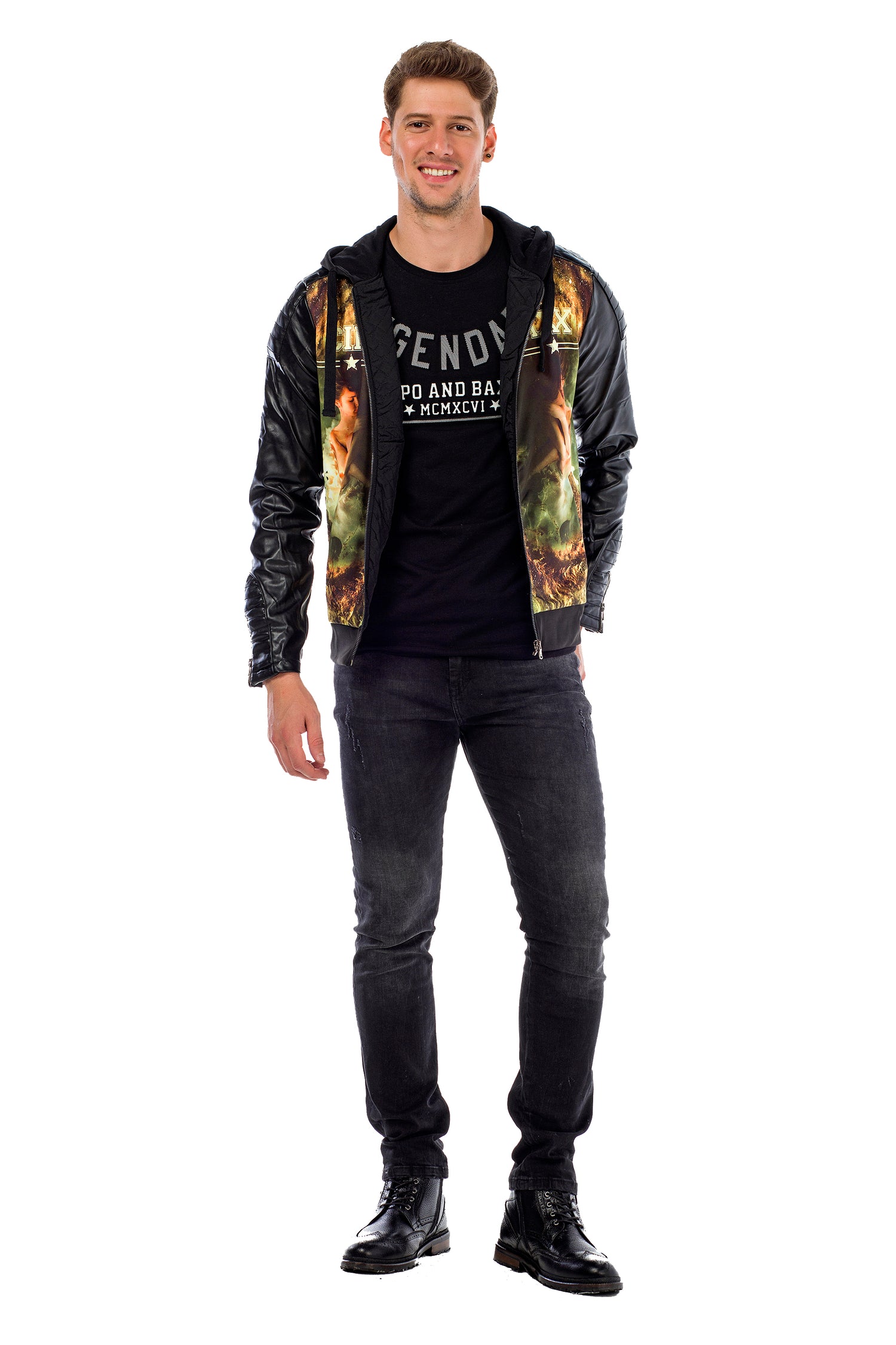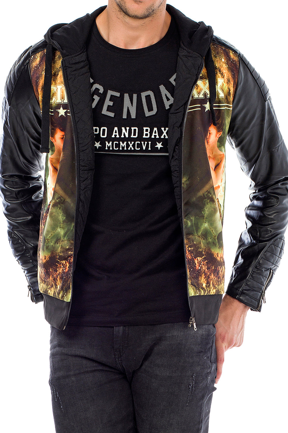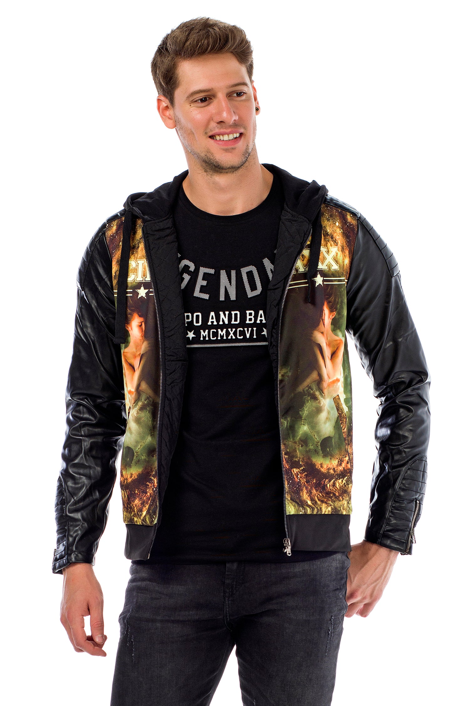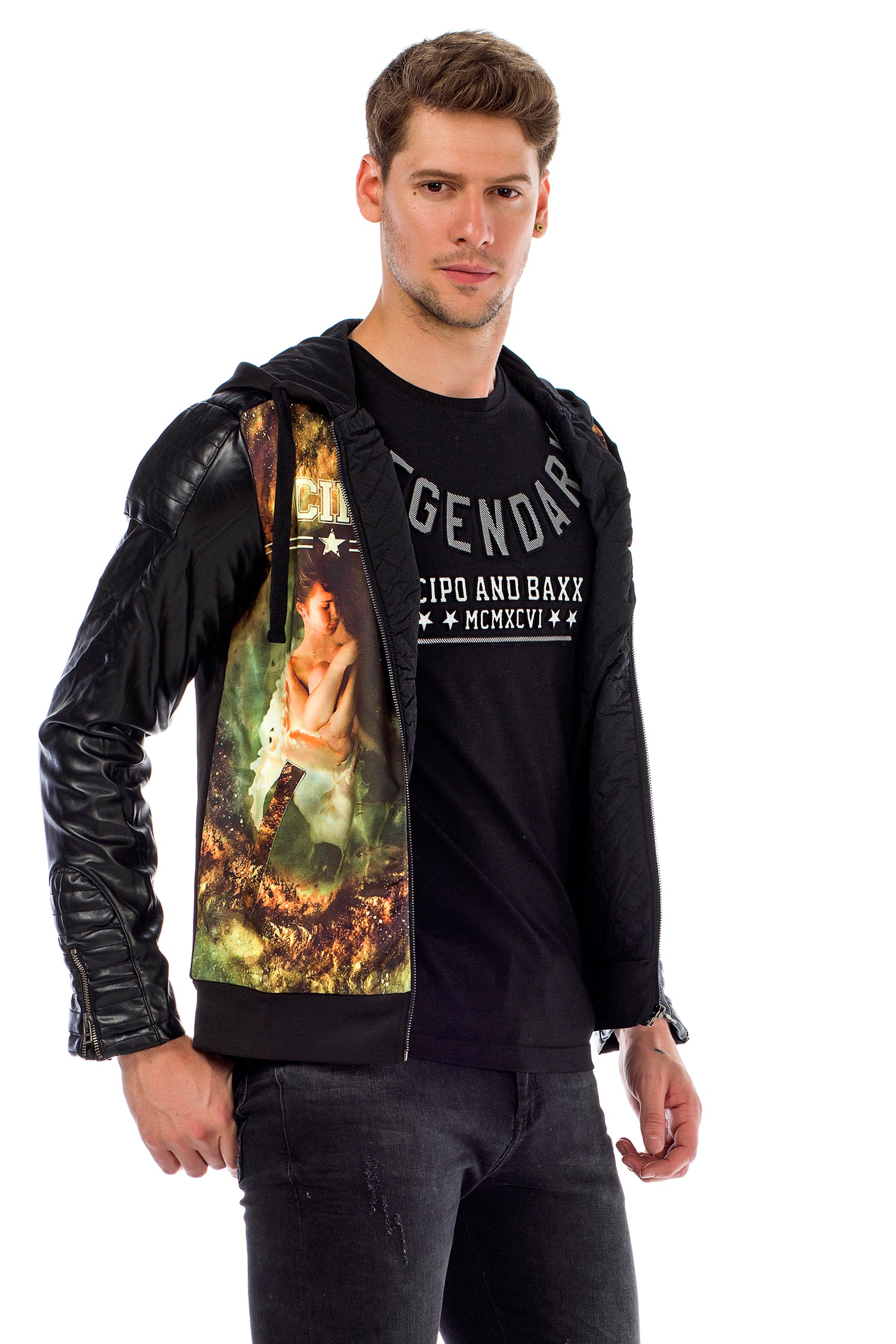 C44610 bluza męska z poliuretanowymi rękawami - Czarny / S nie jest w magazynie i zostanie wysłany, gdy tylko będzie ponownie dostępny