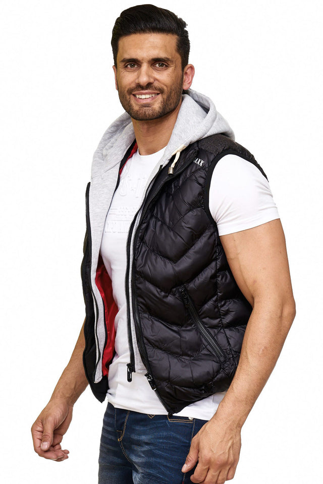 Wyraź swój styl dzięki męskiej kamizelce zimowej CM111 marki Cipo & Baxx – idealnej na chłodne dni i miejskie stylizacje. Nowoczesny pikowany wzór w klasycznej czerni łączy funkcjonalność z męską elegancją. Odpinany kaptur zapinany na zamek błyskawiczny zapewnia elastyczne możliwości noszenia – zarówno w stylu sportowym, jak i swobodnym.