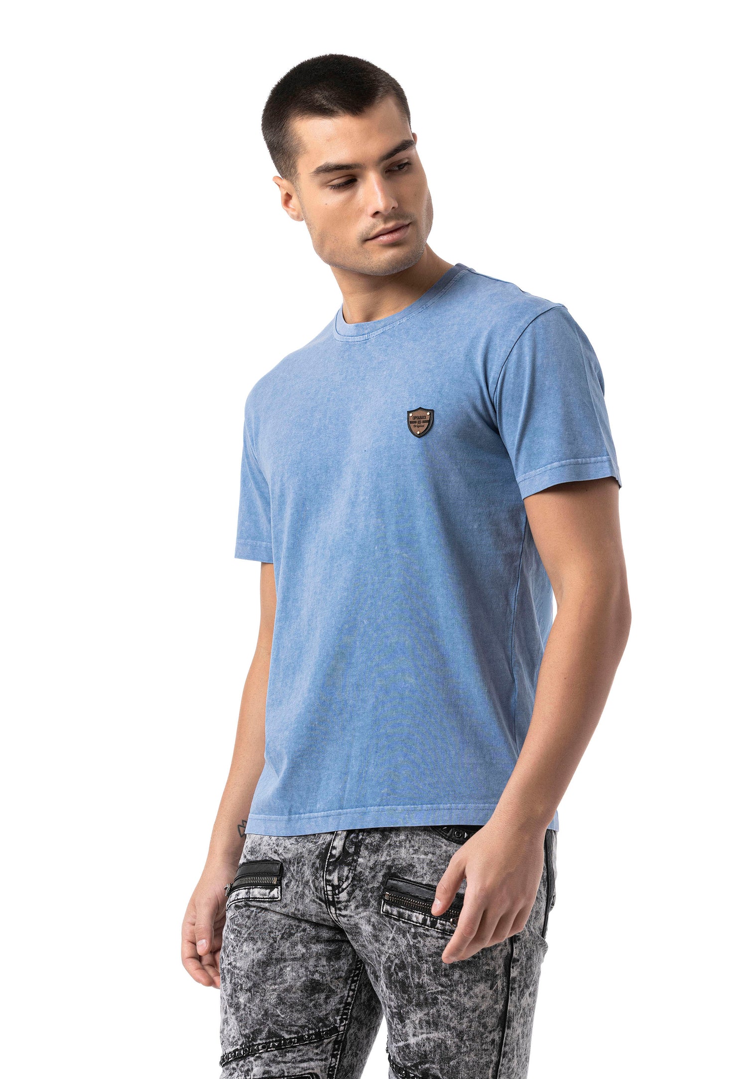 CT808 T-shirt męski Relax Fit ze spraniem i naszywką - Niebieski / S nie jest w magazynie i zostanie wysłany, gdy tylko będzie ponownie dostępny