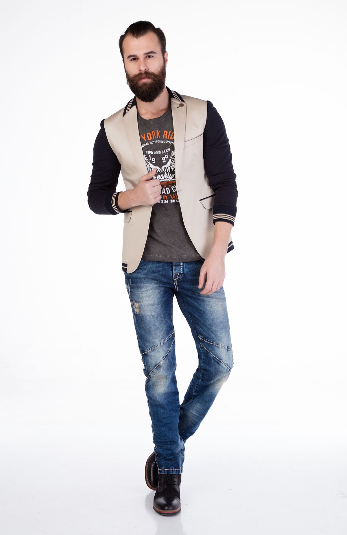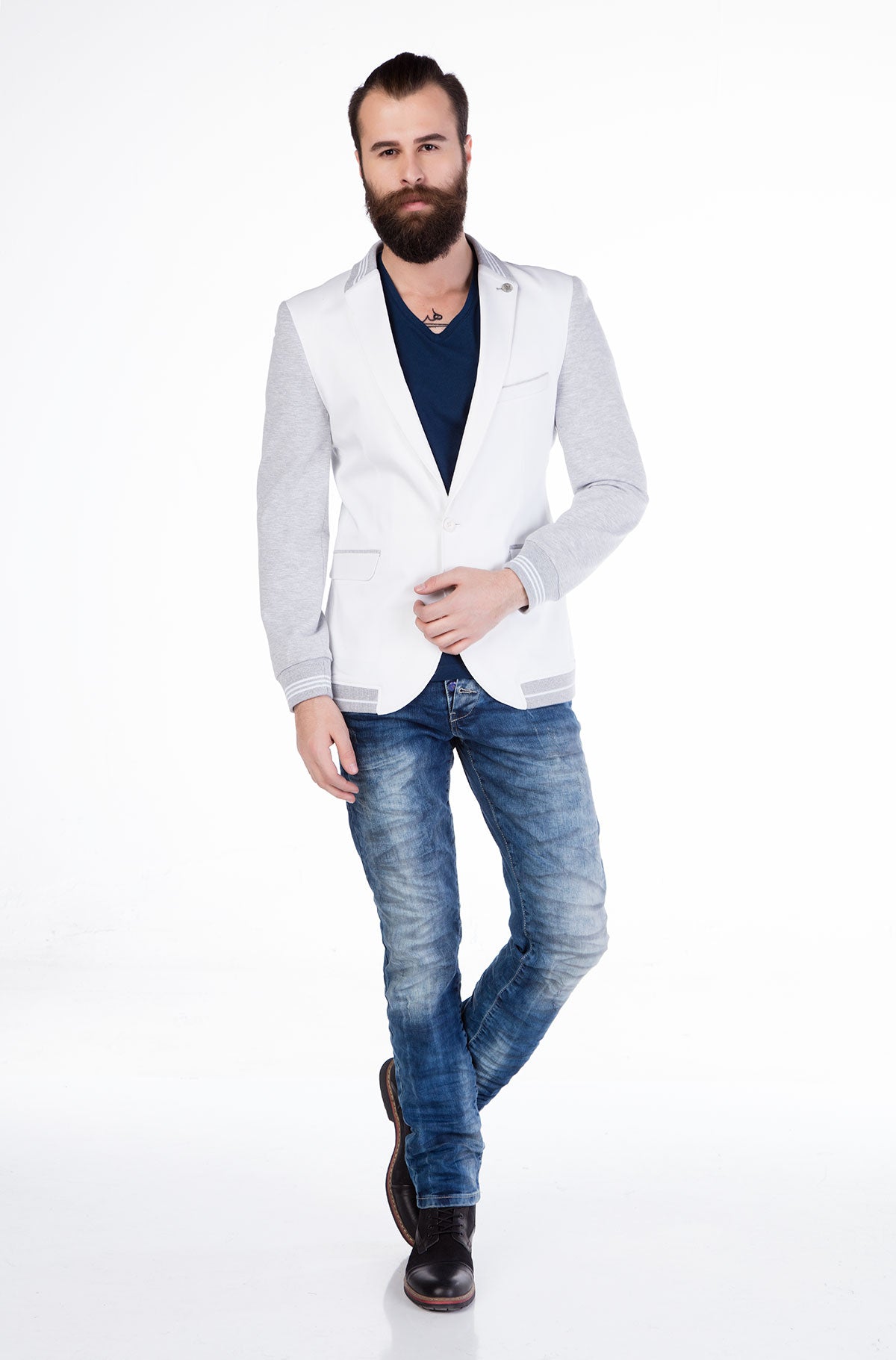 Męska kurtka CJ126 - BIAŁO-SZARY / 50 nie jest w magazynie i zostanie wysłany, gdy tylko będzie ponownie dostępny