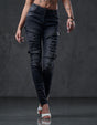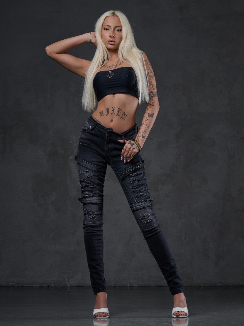 WD383 jeansy damskie w motocyklowym stylu - Czarny / W25-L32 nie jest w magazynie i zostanie wysłany, gdy tylko będzie ponownie dostępny