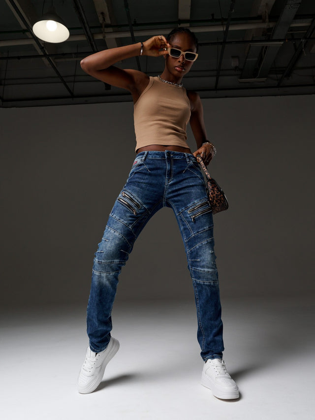 WD501 jeansy damskie z suwakami - Niebieski / W25-L32 nie jest w magazynie i zostanie wysłany, gdy tylko będzie ponownie dostępny