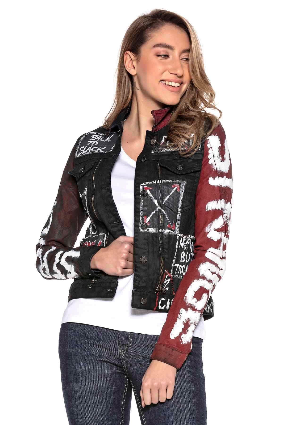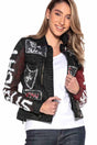 WJ172 damska jeansowa kurtka z kolorowym wzorem - Czarny / S nie jest w magazynie i zostanie wysłany, gdy tylko będzie ponownie dostępny