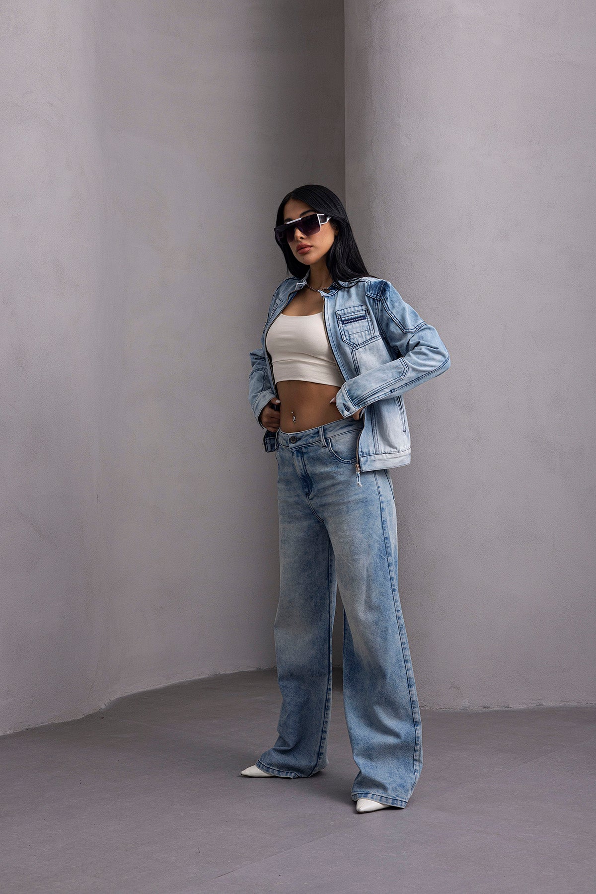 WJ233 kurtka jeansowa damska - Jasnoniebieski / S nie jest w magazynie i zostanie wysłany, gdy tylko będzie ponownie dostępny