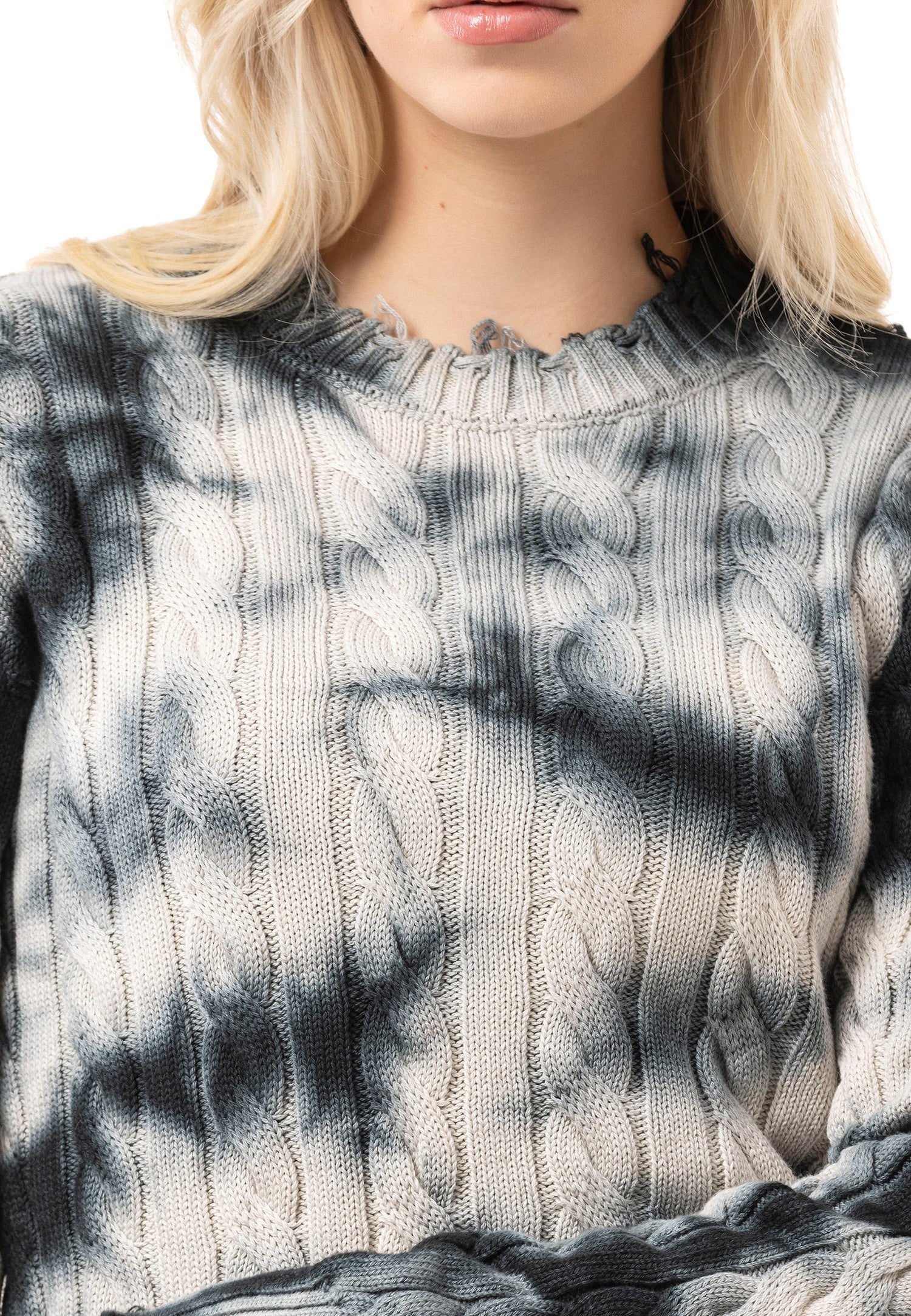 Damska dzianinowa bluza WP268 wnosi powiew świeżości do codziennej garderoby. Wyrazisty wzór tie-dye w połączeniu z delikatną strukturą prążków nadaje bluzie nowoczesny, a jednocześnie przytulny charakter. Klasyczny okrągły dekolt, długie rękawy i elastyczne ściągacze zapewniają wygodne dopasowanie – idealne do swobodnych stylizacji na czas wolny, kreatywnych zestawów streetwearowych lub jako przyciągający wzrok element codziennej garderoby.