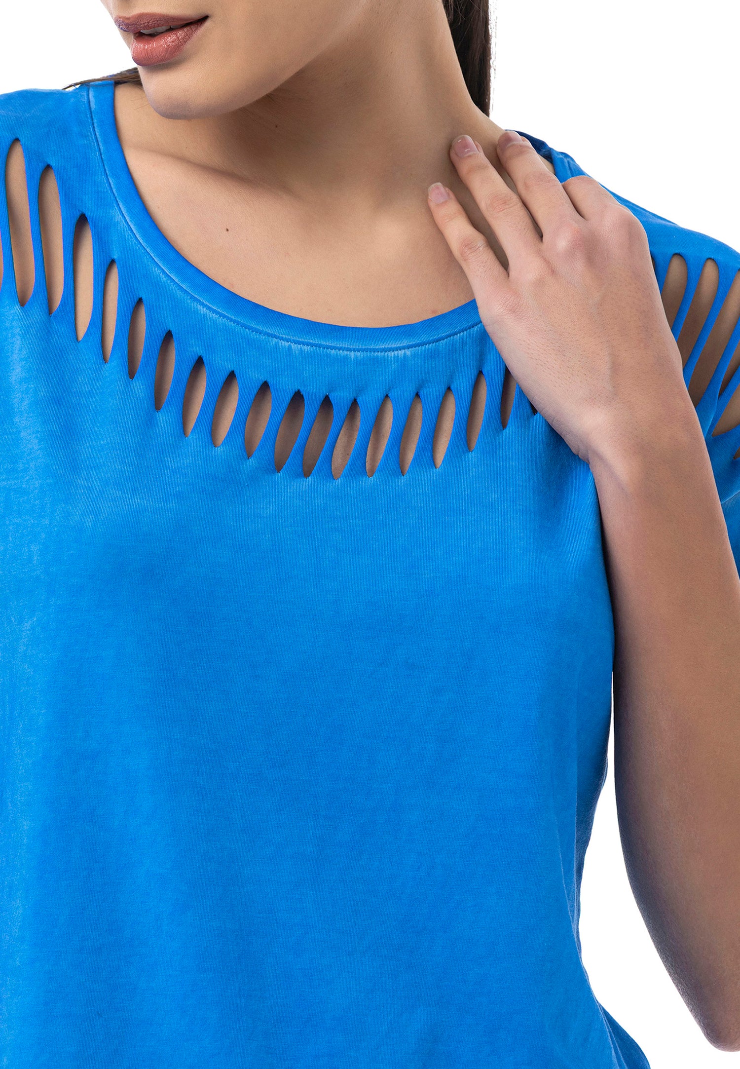 Koszulka damska WT388 marki Cipo & Baxx łączy w sobie nowoczesny design z modnym wyglądem. Wycięcia wzdłuż dekoltu i ramion nadają jej stylowy i przewiewny wygląd, idealny na ciepłe dni. Koszulka jest wykonana z wysokiej jakości materiału, który jest przyjemny w dotyku i zapewnia optymalny komfort. Dzięki luźnemu krojowi i krótkim rękawom idealnie pasuje do dżinsów lub szortów i stanowi modny akcent każdej stylizacji.
