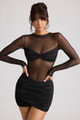 WY177 przylegająca przezroczysta mini sukienka - Czarny / S nie jest w magazynie i zostanie wysłany, gdy tylko będzie ponownie dostępny