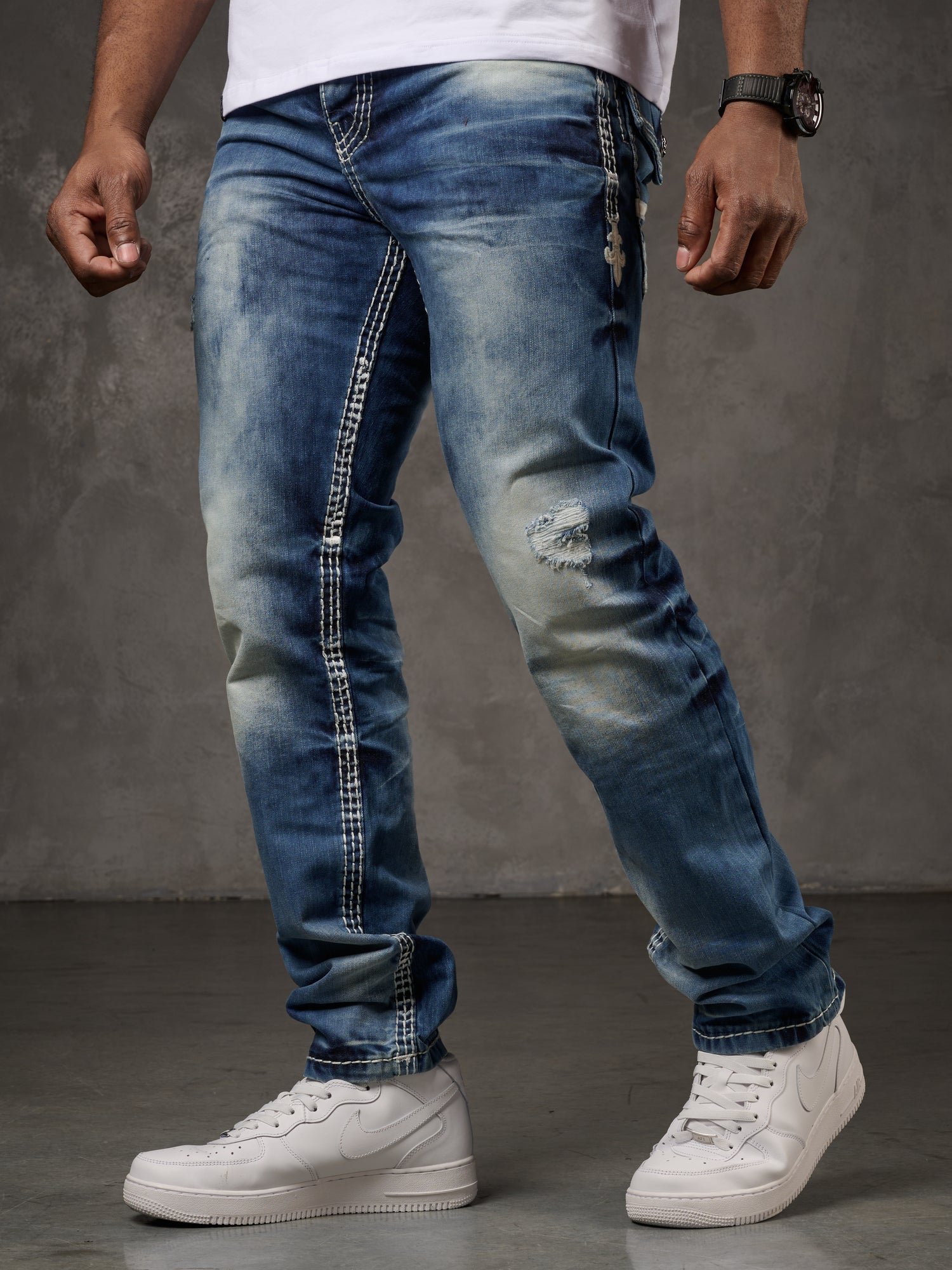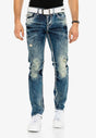 CD149 Herren bequeme Jeans im coolen Used-Look Straight Fit